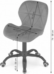Poživite svoj delovni prostor z elegantnim in udobnim stolom NOTO. Žametni prevlek je prijeten na dotik, skupaj z geometrijskim prešitjem pa stolu dodaja sodoben videz. Široko naslonjalo in ergonomsko oblikovan sedalni del podpirata pravilno držo telesa ter zagotavljata udobje tudi pri daljšem sedenju.