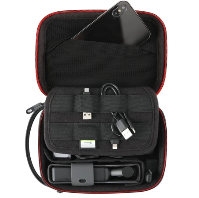 Mini transportni etui PGYTECH za kamero DJI Osmo Pocket ponuja kakovostno izdelavo in varno prenašanje. Vanj se prilega Osmo Pocket skupaj z dodatno opremo zahvaljujoč dvema dolgima in štirim kratkim prilagodljivim predelkom. Etui je izdelan iz kakovostnega materiala, ki odlično ščiti pred vodo.
