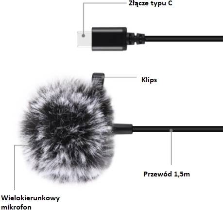 Mikrofon je opremljen z USB-C priključkom, kar zagotavlja široko združljivost s sodobnimi mobilnimi napravami. Z mikrofonom prejmete: