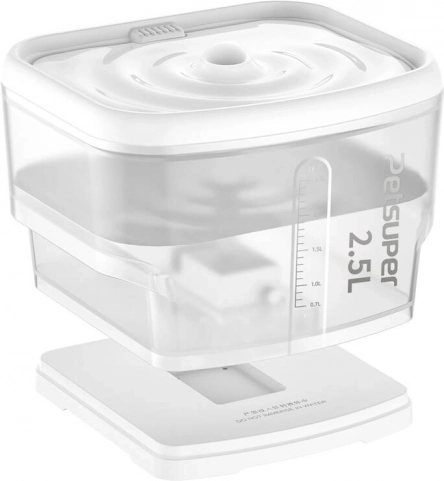 Pametna fontana za pse in mačke PETSUPER PW03 s prostornino 2,5 l zagotavlja neprekinjen dostop do sveže in filtrirane vode. Ponuja tih način delovanja 30 dB, trostopenjsko filtracijo in samodejni izklop pri nizki ravni vode za varno in udobno uporabo.
