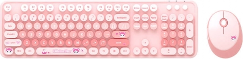 Udobno tipkanje zagotavlja polnovredna tipkovnica s 104 tipkami, funkcijami za hitro upravljanje in življenjsko dobo do 8 milijonov pritiskov. Ergonomska miška ponuja natančno sledenje s preklopnim DPI 800/1200/1600, 4 tipke z življenjsko dobo 3 milijone klikov ter nizko težo za manjšo utrujenost roke.