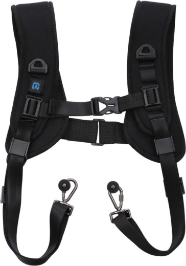 Dvojni ramenski trak je zasnovan z mislijo na udobje in ergonomijo, kar omogoča udobno nošenje fotoaparatov več ur.