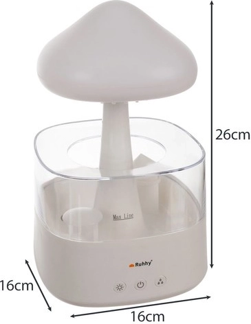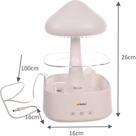 Ta eleganten vlažilnik v obliki gobe združuje funkcionalnost in estetiko. Izdelan je iz kakovostnega PP materiala, njegova prozorna posodica omogoča enostaven nadzor nad nivojem vode.