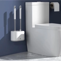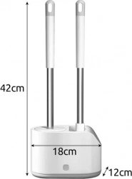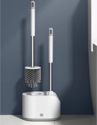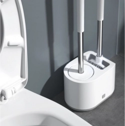 Komplet RUHHY vsebuje dve glavi za brezhibno čisto WC školjko brez napora. Okrogla TPR (termoplastična guma) je prilagodljiva, ne opraska keramike in zlahka doseže pod rob. Ploščata trikotna glava iz trdnega PP se učinkovito spopade z oblogami na težko dostopnih mestih in v kotih.