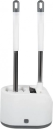 Del kompleta je zaprt odcejevalnik s praktičnim gumbom za higiensko izlivanje vode ter samolepilno stensko držalo, ki prihrani prostor na tleh. Kovinski ročaji iz nerjavečega jekla so trpežni in enostavni za vzdrževanje, bela/siva barvna kombinacija pa se poda vsaki kopalnici.