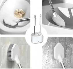 Okrogla TPR glava je prožna in nežna do keramike, ploščata trikotna glava iz PP z ostro konico očisti tudi težko dostopne kote in robove pod robom školjke.