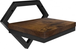 Poudarite svoj interier z moderno stensko polico v industrijskem slogu. Geometrijski okvir v obliki diamanta iz črnega jekla ustvarja učinkovit kontrast s ploščo iz MDF z lesenim furnirjem. Polica je primerna za dnevno sobo, spalnico, predsobo in delovni prostor – za rastline, sveče, dekoracije ali drobnarije.