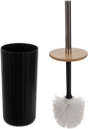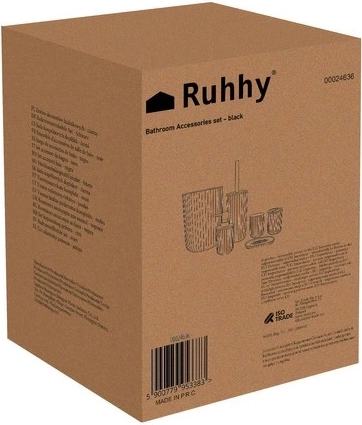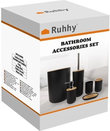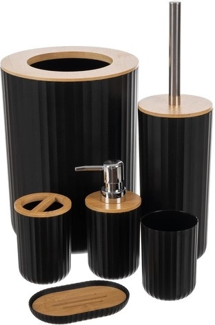 Ta 6-delni komplet kopalniških dodatkov združuje mat črne rebraste površine z naravnimi bambusovimi poudarki. Zahvaljujoč trpežni plastiki PP/ABS in elementom iz nerjavečega jekla je idealen za vlažna okolja, enostaven za čiščenje in dolgoročno ohranja svoj eleganten videz.