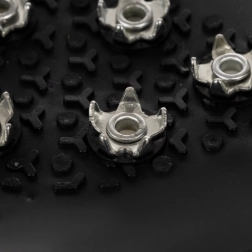 Kovinske konice in segmenti z zobmi povečajo oprijem na poledenelih površinah, zato se lahko gibljete z večjo gotovostjo in stabilnostjo.