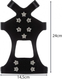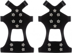 Dereze za čevlje TRIZAND povečajo varnost hoje pozimi – zanesljivo izboljšajo oprijem na poledenelih pločnikih in uteptanem snegu. Prožen material TPE čvrsto objame obutev in zaradi kovinskih konic občutno zmanjšuje tveganje zdrsa.