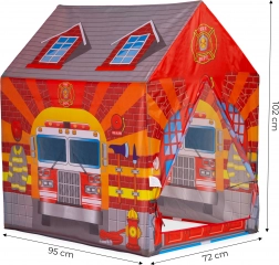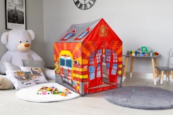 Otroški šotor Gasilska postaja bo razveselil vse male junake. Realistični potiski gasilskega vozila in opreme spodbujajo otroke k igre vlog in samostojni igri. Lahka, a stabilna konstrukcija ter trpežna poliesterska prevleka zagotavljata enostavno prenašanje in varno uporabo doma in na prostem.