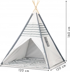 Stilni otroški tipi šotor ECOTOYS spremeni vsako sobo ali vrt v varno zatočišče za igre in domišljijo. Ponuja tekstilno talno podlogo, zložljiv zaprt vhod, pralen pregrinjalo in hitro montažo. Zahvaljujoč čvrsti leseni konstrukciji je primeren za notranjo in zunanjo uporabo ter nudi ure zabave za enega ali več otrok.