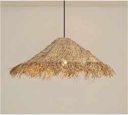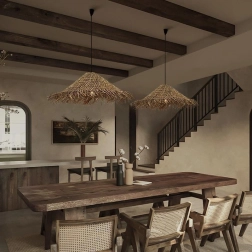 Ta oblikovalska viseča svetilka iz naravnega ratana v prostor prinaša toplo, prijetno svetlobo in avtentičen naravni videz. Organska tekstura in oblika slamnika jo naredita za izviren dodatek kuhinjam, jedilnicam, dnevnim sobam in spalnicam.