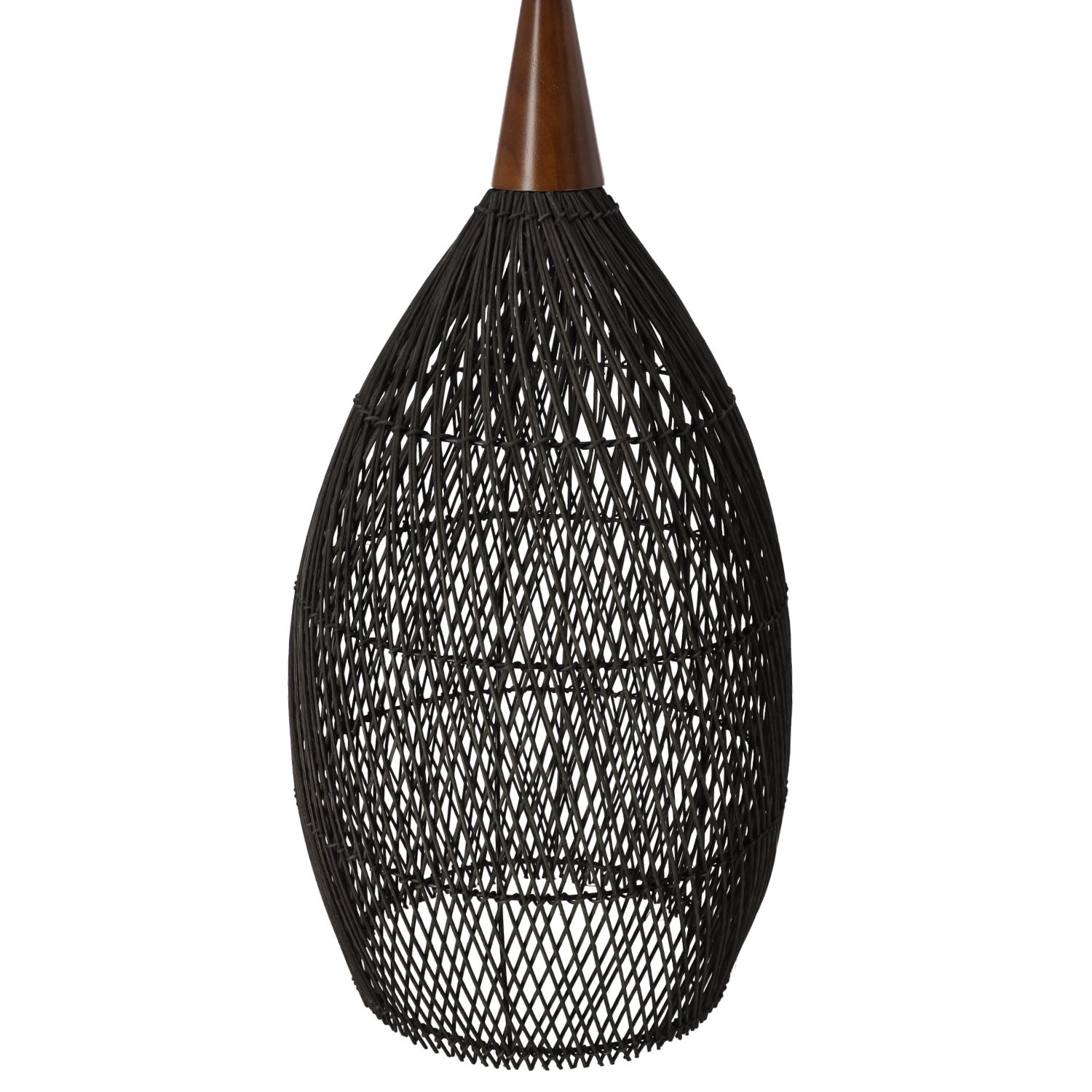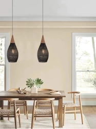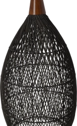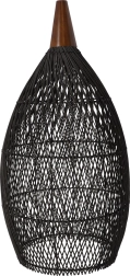 Stilska viseča svetilka iz ratana in lesa v elegantni črni barvi vnese v notranjost naravno toplino in prijetno, domačno vzdušje. Odlično se poda k slogoma boho in skandi, osvetli 5–10 m², z grlom E27 pa zlahka izberete ustrezno žarnico.
