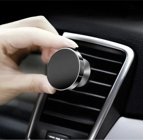 Kompakten magnetni nosilec za avto z namestitvijo v zračno rešetko zagotavlja čvrst in varen oprijem telefona zahvaljujoč močnim magnetom. Ponuja 360° vrtenje in 90° nagib za idealen kot pogleda, preprosto namestitev brez orodja ter eleganten, minimalističen dizajn iz kombinacije kovine in silikona, ki ne opraska rešetke.