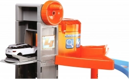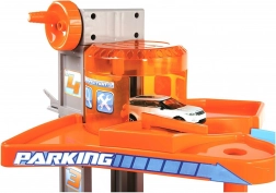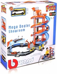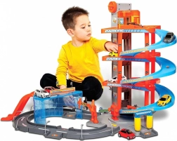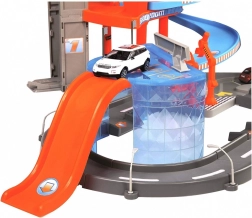 Ta večnadstropna garaža Bburago z avtopralnico skriva veliko funkcionalnih elementov! Dvignite avtomobilček z dvigalom do najvišjega nadstropja garaže in ga spustite po cesti navzdol! Ustavite se v servisu, operite avto v avtopralnici in se zapeljite skozi dvižne zapornice!