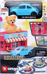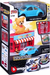 Razširite svojo mestno zbirko z setom Bburago City Igrača 1:43, ki prinaša realistične podrobnosti in odlične možnosti za igro. V kompletu je kovinski model avtomobila Bburago s precizno izdelano karoserijo in številnimi detajli, plastična stavba trgovine z igračami s premičnimi vrati ter dodatki za oblikovanje ulice.