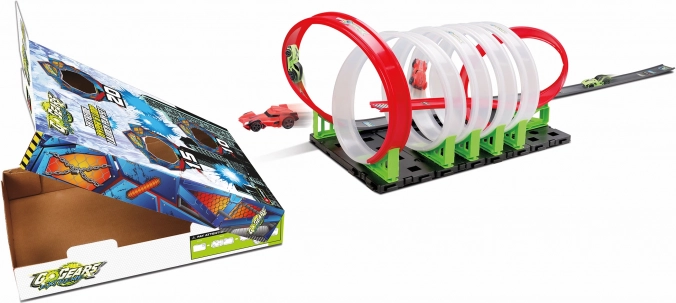 Doživite adrenalinsko vožnjo z avtocesto Bburago GoGears Extreme! Sistem s 6 zankami, skakalno rampo in 2 izjemno hitrima avtomobilčkoma ponuja akcijo, ki bo navdušila male in velike dirkače. Z enim navijanjem avtomobilček prevozi do 25 m, za zabavo pa poskrbi tudi papirnata tarča z točkovanimi conami.