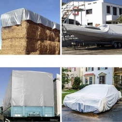 Idealna kot zaščita pred dežjem in soncem za avtomobile, čolne, tovor, drva ali gradbišče. Dvostranska ponjava v srebrni/sivi barvi.