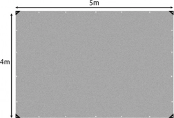 Kotni so ojačani s plastičnimi zaščitniki, po obodu pa so nerjaveča očesa Ø 12 mm razporejena približno na vsakih 100 cm – pri dimenziji 4 × 5 m skupaj 18 očes. Ponjava je dvostransko uporabna in odlično služi kot začasna streha, zaščita materiala, prekrivanje tovora ali zaščita pred vremenskimi vplivi.
