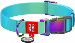 Odsevni elementi izboljšajo vidnost v mraku. Trdna plastična zaponka in kovinski D-obroček poskrbita za varno pripenjanje povodca, medtem ko modra gradientna izvedba ovratnici doda moderen videz.