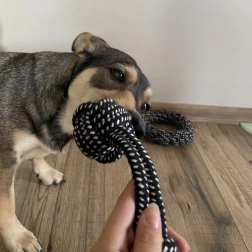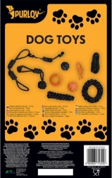 V kompletu najdete vlečne igrače z zankami, vrvne krogle in obroče, gumijaste grizalnike ter interaktivno žogico. Odlično za prinašanje, vlečenje in samostojno igro.