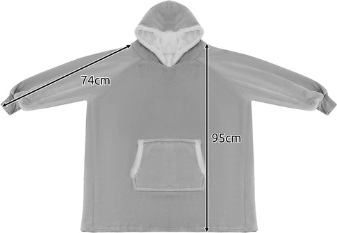 Odenite se v udobje s to XXL oversize pulover–odejo v sivi barvi. Združuje mehko flanelo na zunanji strani in topel pliš v notranjosti, ima kapuco in velik kenguru žep za roke in drobnarije. Univerzalen ohlapen kroj je odličen za poležavanje, branje in gledanje TV ter nudi maksimalno toploto in udobje v hladnih dneh.
