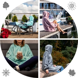 Izdelano na Poljskem - Hoodie Bluzair z odejo je bila zasnovana in sešita na Poljskem. Mikica je skrbno premišljena in idealno prilagojena poljskim razmeram - ni predebela in ne pretanka. Ima čvrste, dvojne šive in obrobe, zaradi katerih rokavi ne lezijo z rok. Je tudi dovolj velika, da pokrije noge, ko jih potisnete pod njo. Če se želite skriti pred jesenjo in zimo - odejna mikica je idealen pripomoček, s katerim se lahko skrijete pred jesenskimi vetrovi in preživite zimski mraz. Zavije kot odeja, vendar ne zdrsne s telesa, zato bo polepšala branje knjig, gledanje filmov ali pitje grelnih napitkov. Za razliko od odeje je ni treba snemati, ko želite vstati iz kavča. Prav prišla vam bo tudi po kopeli - oblecite jo in nikoli več ne boste želeli nositi navadnega kopalnega plašča.