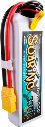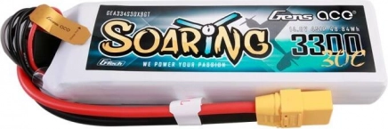 Gens Ace G-Tech Soaring je zanesljiv vir energije za FPV letala, RC krila, kvadrokopterje in heksakopterje. Zahvaljujoč kapaciteti 3300 mAh in konfiguraciji 4S (14,8 V) nudi uravnoteženo razmerje med maso in zmogljivostjo za daljše in učinkovite lete. Stalni praznilni tok 30C (do 60C vršno) zagotavlja stabilno dobavo energije tudi pri dinamičnih manevrih.