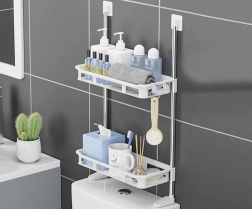 Ta stenska polica nad straniščem je idealna izbira za manjše in večje kopalnice. Dva nivoja zagotavljata dovolj odlagalnega prostora za stekleničke, mila, brisače ali ščetke ter hkrati ohranjata vse na dosegu. Minimalističen dizajn v beli barvi se zlahka ujema z večino notranjosti.