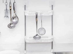 Hitra namestitev s priloženimi pritrdilnimi elementi. Stabilna konstrukcija združuje trpežne plastične police in trdne kovinske palice.
