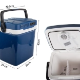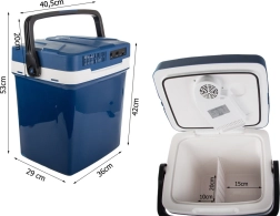 Z napajanjem DC 12 V (avto) in AC 220–240 V (omrežje) je idealna za avto, avtodom, pisarno ali vikend. Lahka, trpežna konstrukcija, priročen ročaj in premišljena notranja razporeditev s predelki olajšajo organizacijo vsebine in prenašanje.