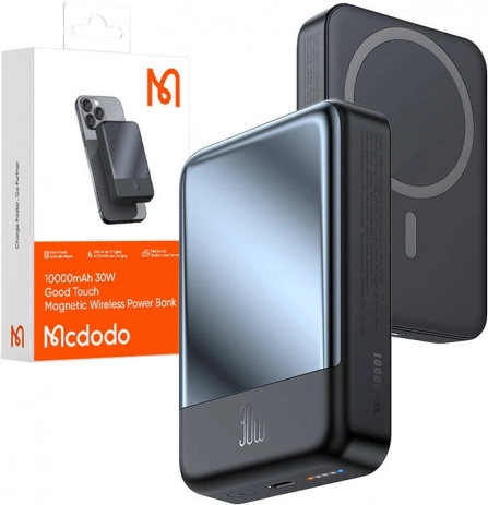 Vzemite zanesljivo energijo s seboj povsod. Magnetna powerbanka Mcdodo s kapaciteto 10000 mAh zmore vaš pametni telefon napolniti večkrat, pri čemer podpira tako brezžično MagSafe/qi polnjenje do 15 W kot tudi hitro žično USB‑C polnjenje do 30 W. Kompaktno ohišje, površina odporna proti odtisom in pregledni LED‑indikatorji jo delajo odličnega sopotnika na poti.