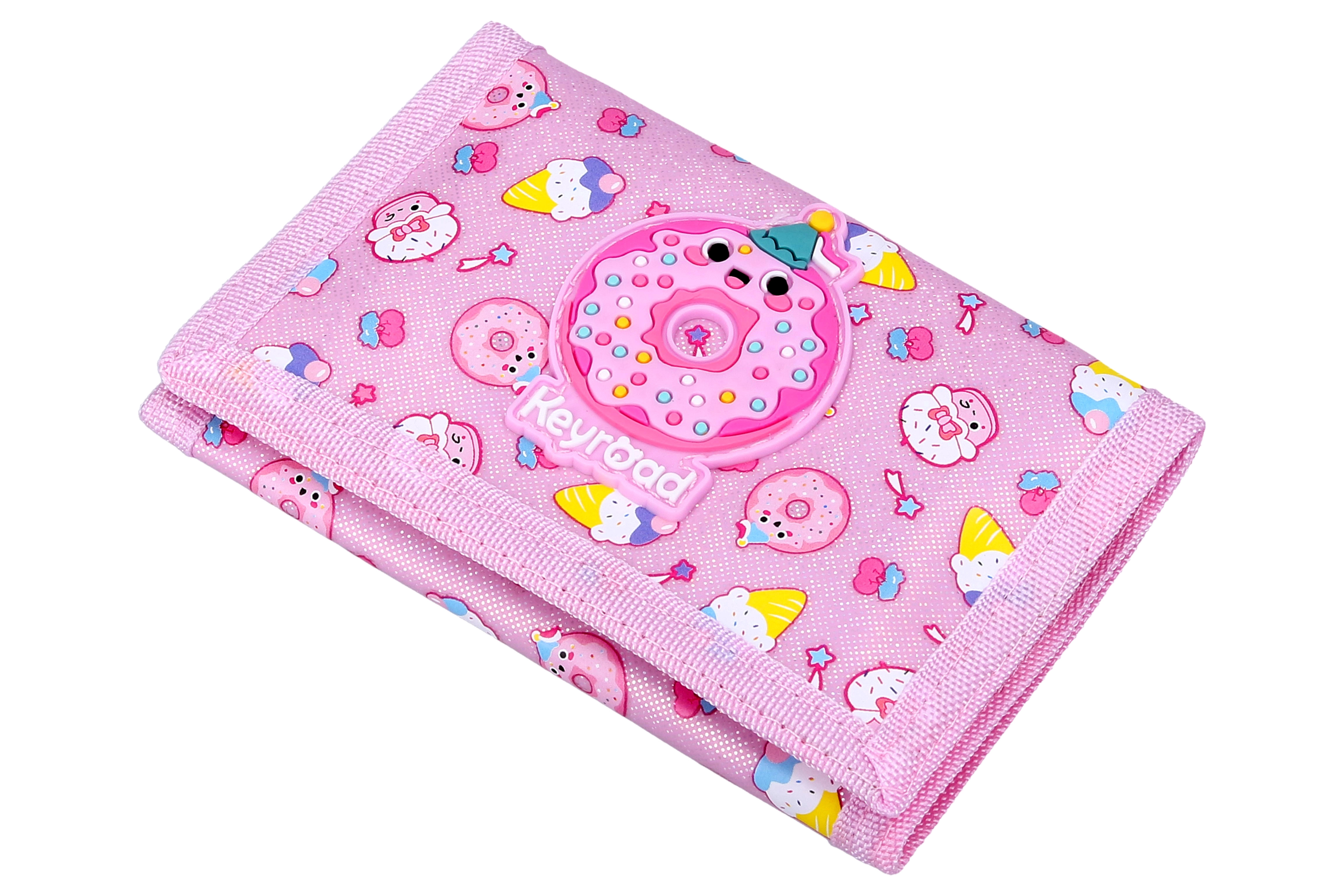 Denarnica je na voljo v 3 različnih izvedbah: modra z jagodo, rožnata s krofom in rdeča z zajčkom. Kompaktne mere so idealne za šolsko torbo, nahrbtnik ali žep.