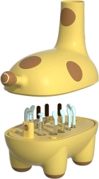Stilizirana posodica v obliki tukana služi kot praktičen prostor za shranjevanje vseh nastavkov, kar doda pridih igrivosti in funkcionalnosti.