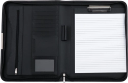 Elegantna in funkcionalna diplomatka v črni mat barvi. Zapiranje na zadrgo, idealna za sestanke in poslovna srečanja. Vsebuje blok A4 in praktične predalčke za vse vaše potrebe.