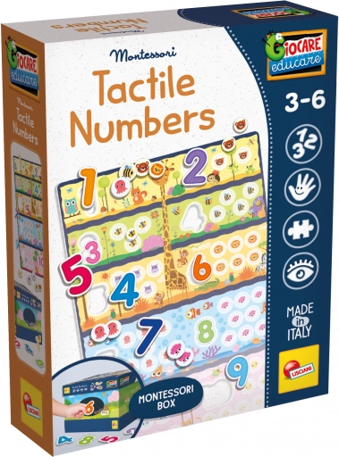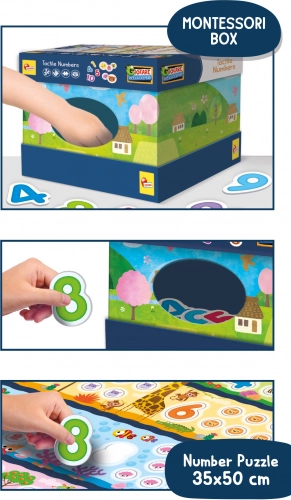 Montessori tipna številčna igra je zasnovana tako, da otroci že od zgodnjih let naravno odkrivajo oblike številk z dotikom. Deli v obliki števil motivirajo k raziskovanju, razvrščanju in sestavljanju, s čimer podpirajo koncentracijo, tipni spomin in koordinacijo oko–roka. Praktična škatla olajša shranjevanje in ohranja red.