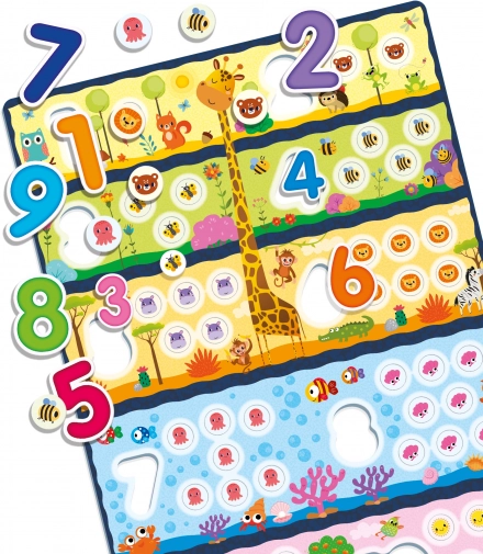 Zabavna in izobraževalna igra za najmlajše, ki razvija fino motoriko, koncentracijo in tipni spomin. S pomočjo številčnih sestavljank si otroci intuitivno osvajajo oblike številk in se jih učijo prepoznavati. Priložena sta praktična škatla in pregledna navodila. Idealno za učenje doma in v vrtcu, spodbuja samostojno raziskovanje in razvoj predmatematičnih veščin.