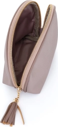Odkrijte praktično rešitev za vaše manjše kozmetične potrebščine s potovalno okroglo kozmetično torbico PLUS. Ta torbica, izdelana iz kakovostnega usnja v moderni barvi moka, združuje slog in funkcionalnost v enem:
