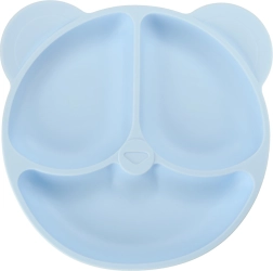 Krožnik iz silikona, primernega za stik z živili, z več predelki omogoča pregledno serviranje in spodbuja samostojno hranjenje. Igriva oblika medvedka pritegne otroke.