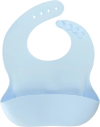Mehak silikonski slinček z nastavljivim zapenjanjem in globokim žepkom zanesljivo ujame drobtine in tekočine ter pri vsakem obroku zaščiti oblačila.