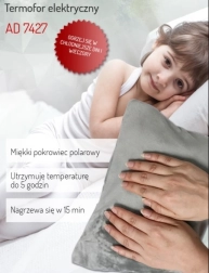 Električni termofor ADLER je praktična grelna blazinica za domačo sprostitev in lajšanje napetosti. Zahvaljujoč moči 360 W se segreje že v 15 minutah in ohranja prijetno toploto do 5 ur. Ima mehko flisasto prevleko, prijetno na dotik, in je idealen za mišice, sklepe in trebušček.