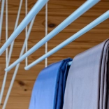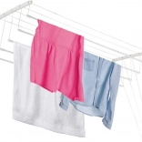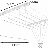 Sušilo se pritrdi na strop, zato ne zaseda tal. Mere 180 × 60 × 30 cm zagotavljajo veliko sušilno površino tudi v majhni kopalnici ali na balkonu.