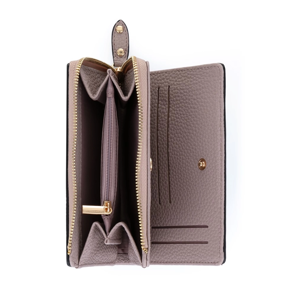 Ta ženska usnjena denarnica v elegantni barvi mocca združuje slog in praktičnost. Kakovostna izdelava zagotavlja dolgo življenjsko dobo, premišljena razporeditev pa dober pregled nad vsemi karticami in gotovino. Kompaktna velikost je odlična za vsak dan in manjše torbice.