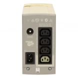 Naprava ponuja pregledne LED kazalnike (On Line, On Battery, Overload, Replace Battery) ter osrednji gumb za preprosto upravljanje. Zadnja plošča je opremljena z več vtičnicami IEC za zasilno napajanje in prenapetostno zaščito. Robusten izdelek znamke APC zagotavlja dolgoročno zanesljivost.