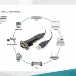 Adapter omogoča povezavo naprav z 9‑pinovskim serijskim priključkom z modernimi USB računalniki.