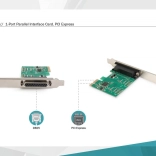 V primerjavi z vgrajenimi paralelnimi priključki kartica nudi hitrejši prenos podatkov do 2,5 Mbit/s, boljšo združljivost in zanesljivost. Idealna je za podjetja in delavnice, ki želijo ohraniti delovanje obstoječe opreme in hkrati izkoristiti moderno vodilo PCI Express.