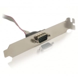 Serijski 9-pinski moški priključek za vgradnjo v ohišje, s 25 cm dolgim kablom, ki se konča z 10-pinskim priključkom za povezavo z matično ploščo.
