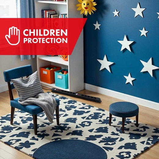 Vgrajeni samodejni odklopnik ščiti pred preobremenitvijo in kratkim stikom, otroška zaščita pa preprečuje vstavljanje tujih predmetov v vtičnice.