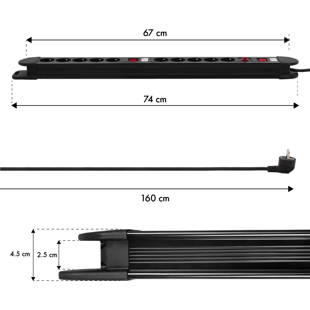 Pametno in varno razširite napajanje svojih naprav. Ta robusten napajalni razdelilec z 10 ozemljenimi vtičnicami omogoča prilagodljivo upravljanje porabe zahvaljujoč dvema samostojnima stikaloma – vsaka polovica deluje neodvisno. Zaščito zagotavlja vgrajeni samodejni odklopnik, ki ob preobremenitvi ali kratkem stiku takoj ukrepa.